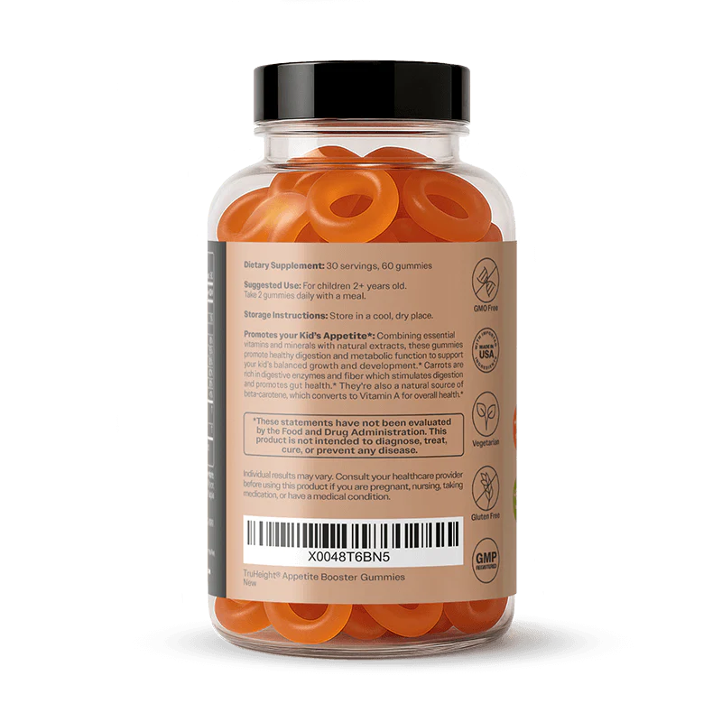 TruHeight® Kids Appetite Booster Gummies are here to make mealtime exciting! Designed to help little ones boost their appetite naturally, these gummies make mealtime more enjoyable and help them get the nutrients they need to grow up strong and healthy.*